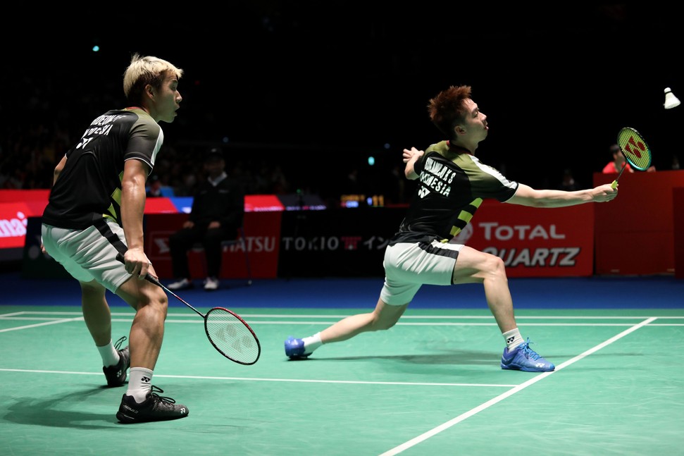 Kevin Sanjaya/Marcus Fernaldi Gideon berhasil balas dendam pada He Jiting/Tan Qiang di semifinal Jepang Terbuka 2018. https://www.cnnindonesia.com/olahraga/20180915195419-170-330505/pahami-pola-main-he-tan-kevin-marcus-sukses-balas-dendam/