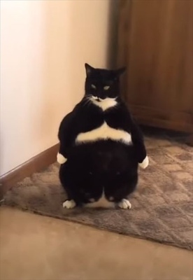 小さくてぽっちゃりした執事が指示を待っているよう・・・(笑) 立ち姿が妙に人間っぽい猫が話題に! - ニコニコニュース