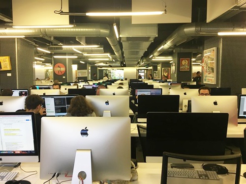 何やら、リュックを背負ったギークっぽい身なりの若者がひっきりなしに出入りしています。入り口で待っていると、「Bonjour, Ma-Ko-To」とC-3PO(映画「スター・ウォーズ」に出てくる金色の人型ロボット)のような声のアナウンス。ゲートが音を立てて開き、中に入るとそこには映画さながらの巨大なコンピュータールームが。