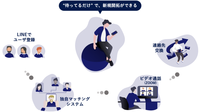 “待ってる”だけで自動的にマッチングの案内が届き、承諾すると「ビデオ通話(ZOOM)」の日程調整に進みます。ビデオ通話(ZOOM)で顔合わせをすることによって、秘密性の高い物件情報のやり取りを円滑にできる仕組みとなっています。