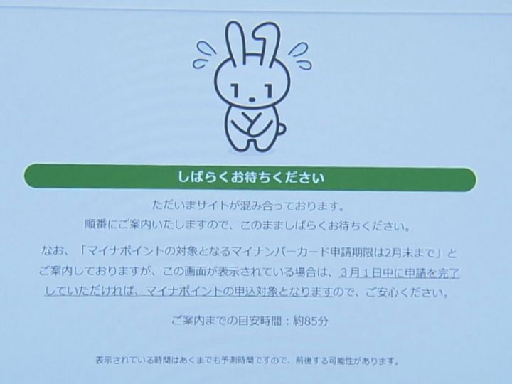 申請サイトは朝から最終日の駆け込みで数十分待ちの状態になり、総務省は緊急避難措置として、オンラインでの申請については28日までだった期限を3月1日までに延長しました。