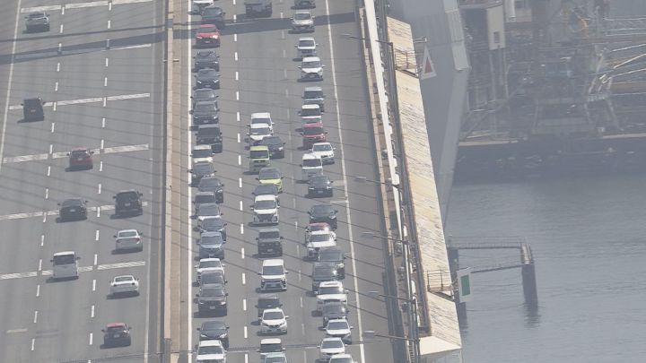 名港潮見ICの約1キロ手前では、3車線とも車がゆっくりとしか前に進んでいませんでした。