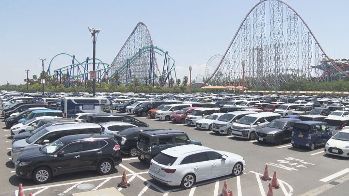 渋滞を越えて取材班が到着したのは、三重県桑名市のナガシマスパーランドです。駐車場は東海3県以外のナンバーも目立ち、ほぼ満車でした。